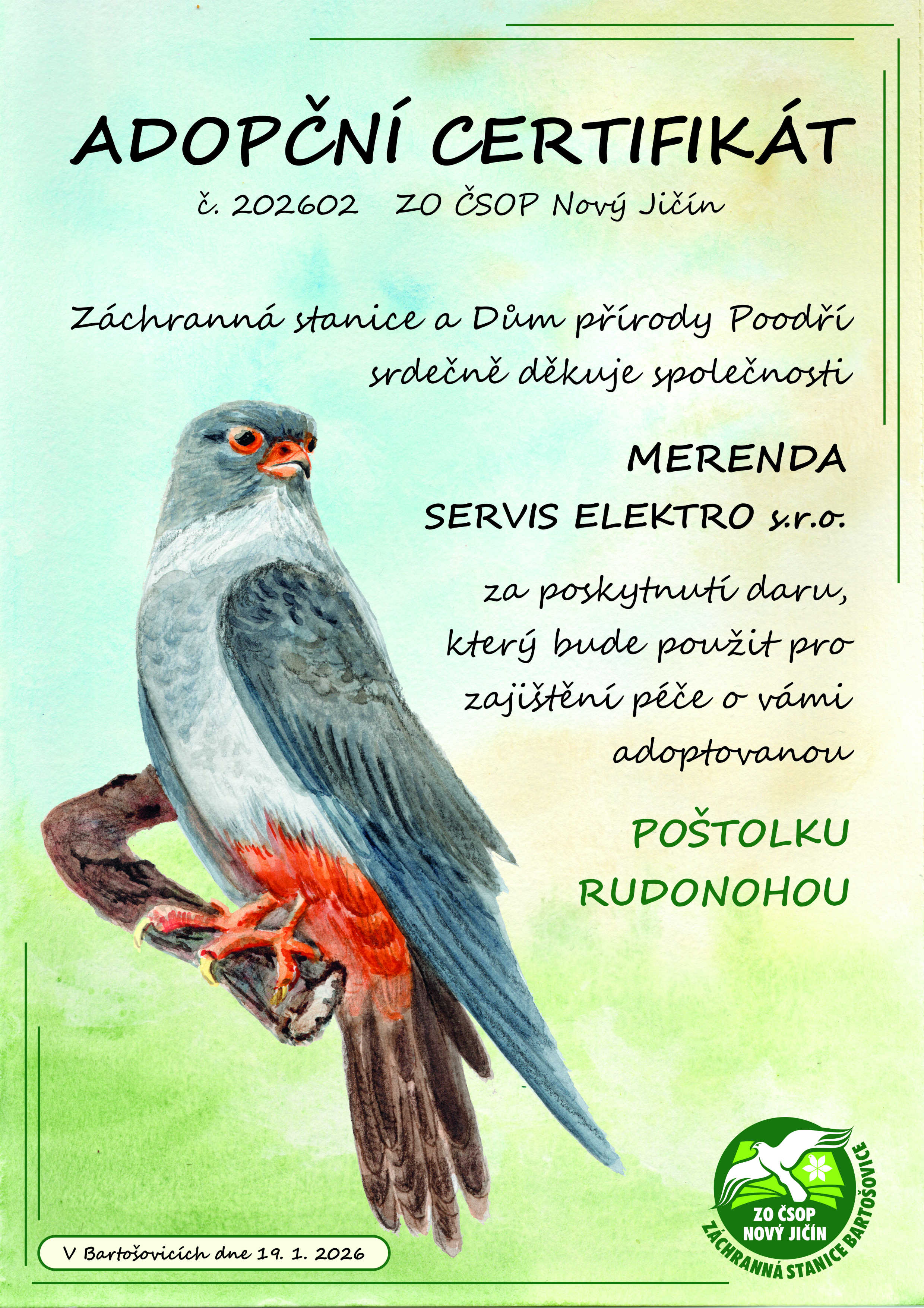 MERENDA – servis elektro s.r.o. – poštolka rudonohá