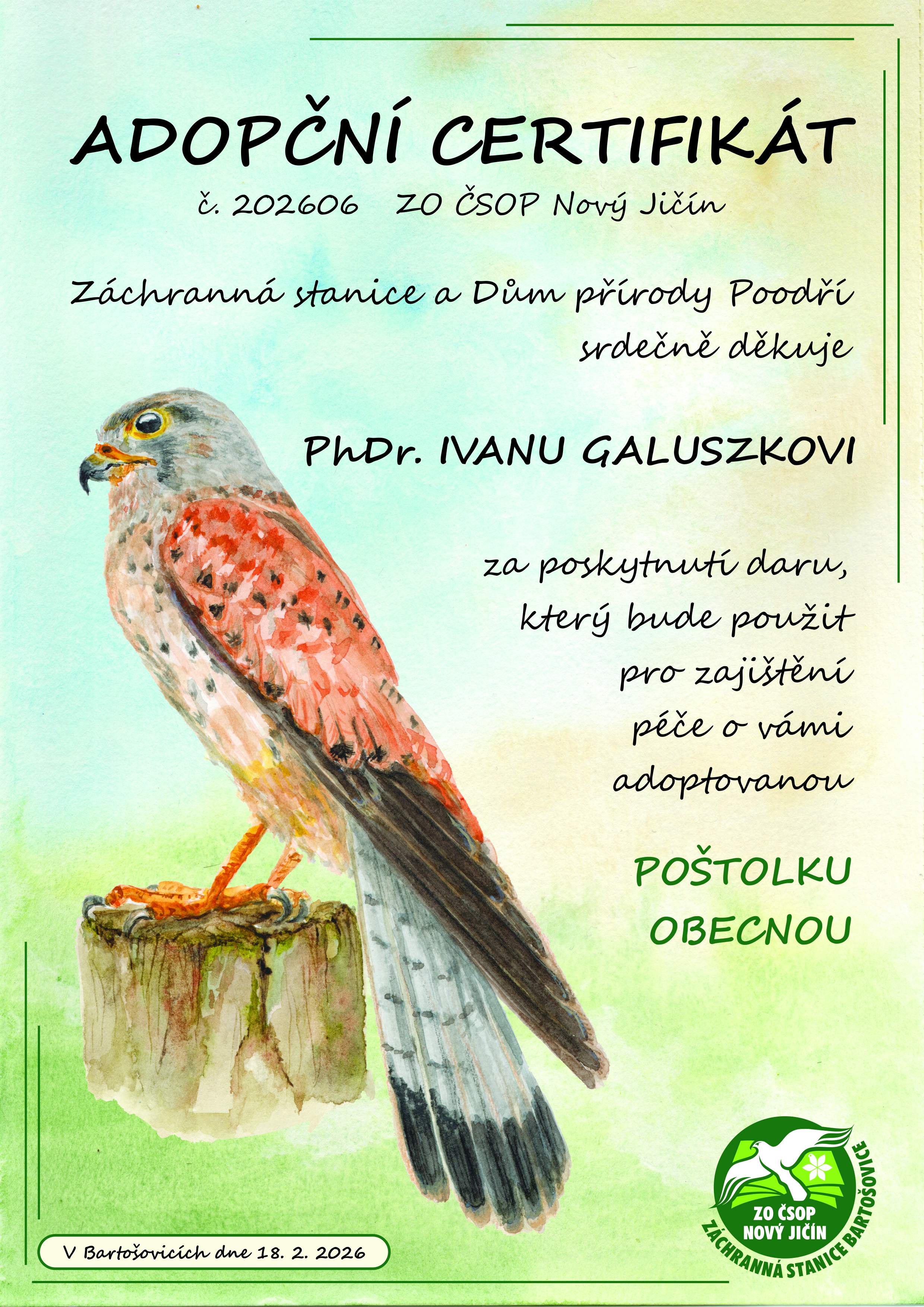 PhDr. Ivan Galuzska – poštolka obecná