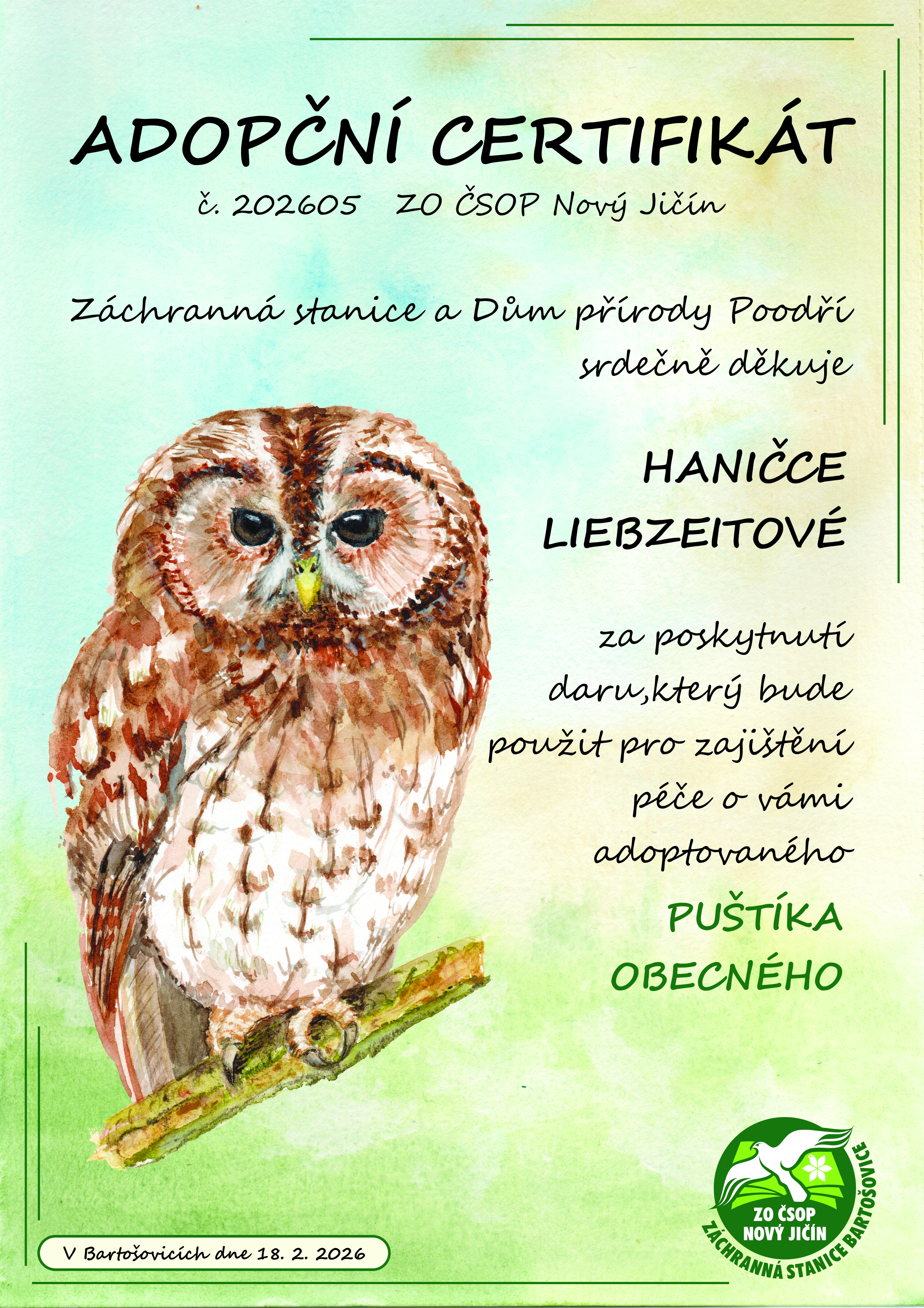 Hanička Liebzeitová – puštík obecný