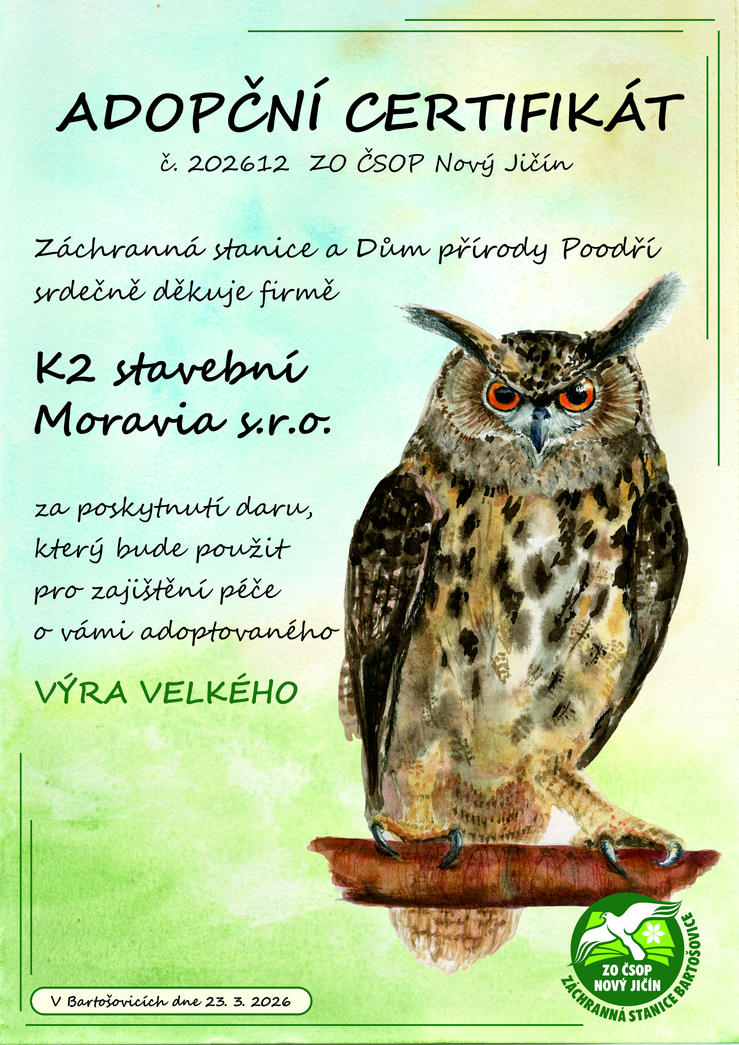 K2 stavební Moravia s.r.o. – výr velký