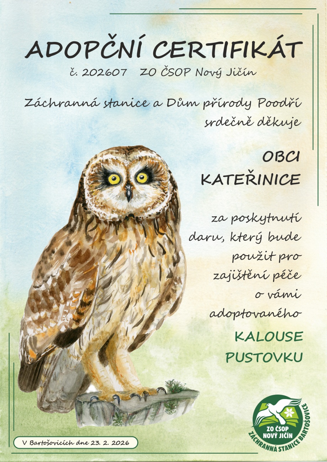 obec Kateřinice – kalous pustovka