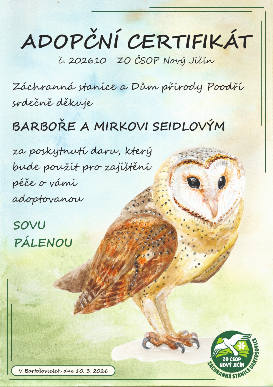 Barbora a Mirek Sedlovi –sova pálená